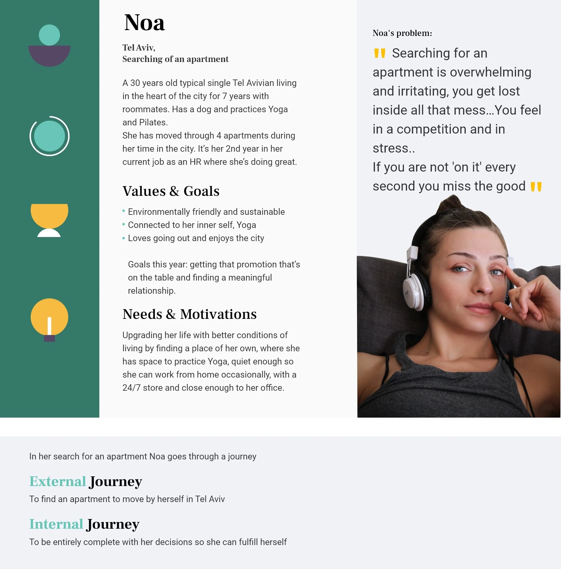 In order to understand the problems in searching for an apartment with existing platforms, we need to understand the frustration of Noa's current Journey using apps like Facebook and Yad2.